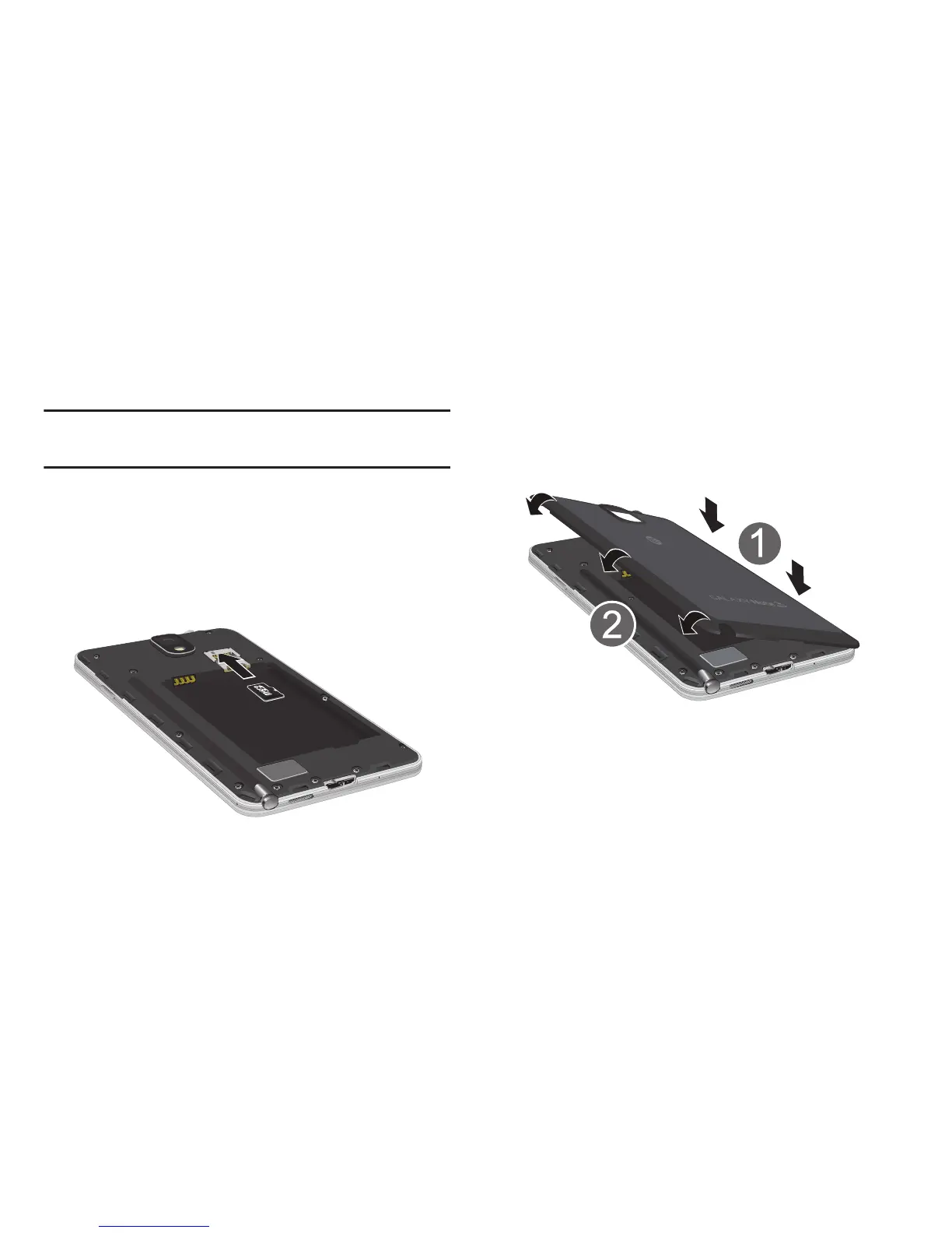1. Place the battery cover onto the back of the phone (1)