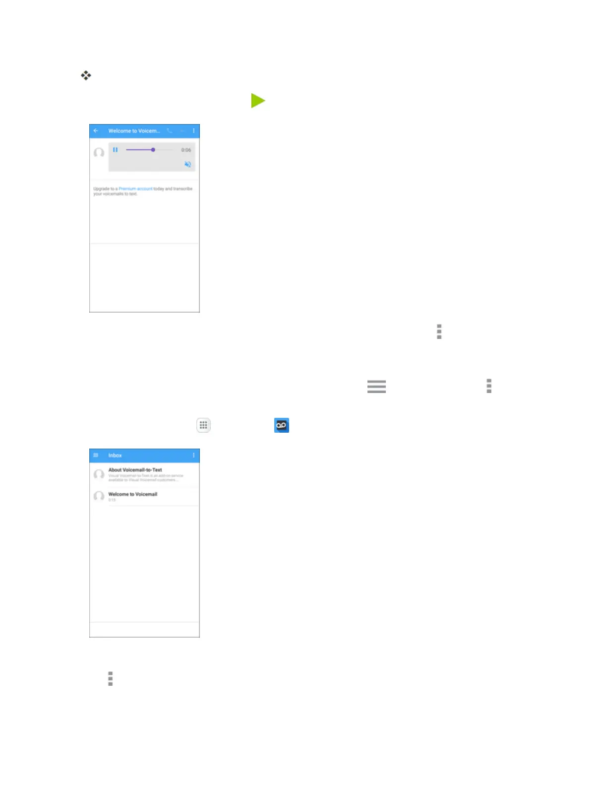 Tip:ForanexplanationofallyourVisualVoicemailoptions,tapMore options >Help.