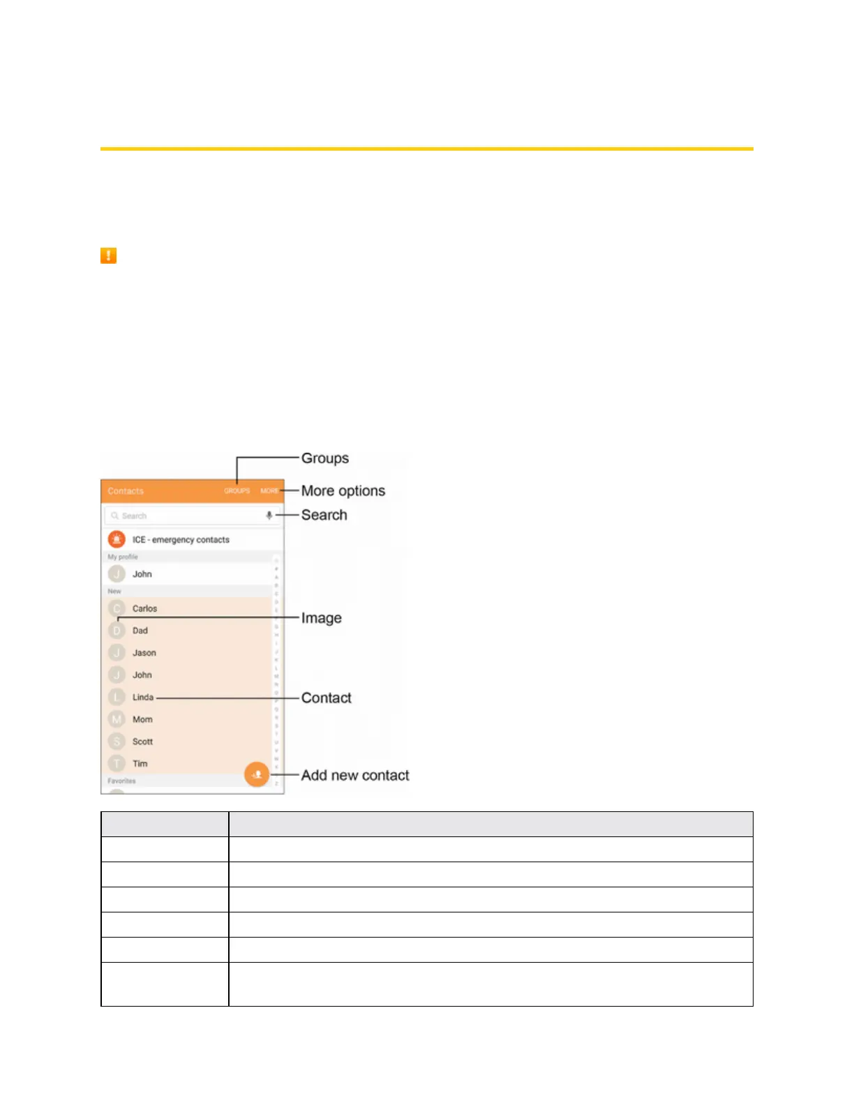 Thefollowingillustrationshow’syourContactsapplayoutanddescribesthevariousfeatures.