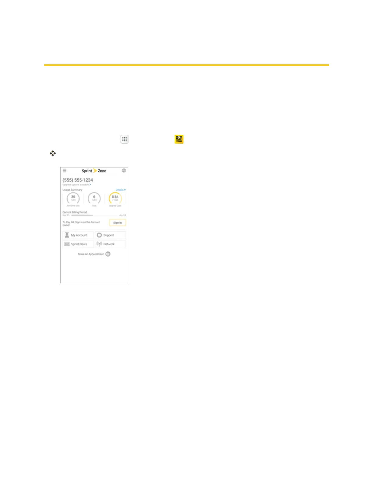 2. TapMy AccounttosignintoandmanageyourSprintaccount,Supporttogethelpwithyour