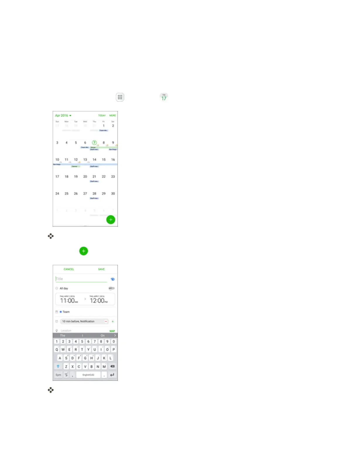 3. Enteraneventtitle,startdate/time,enddate/time,etc.,andthentapSave.