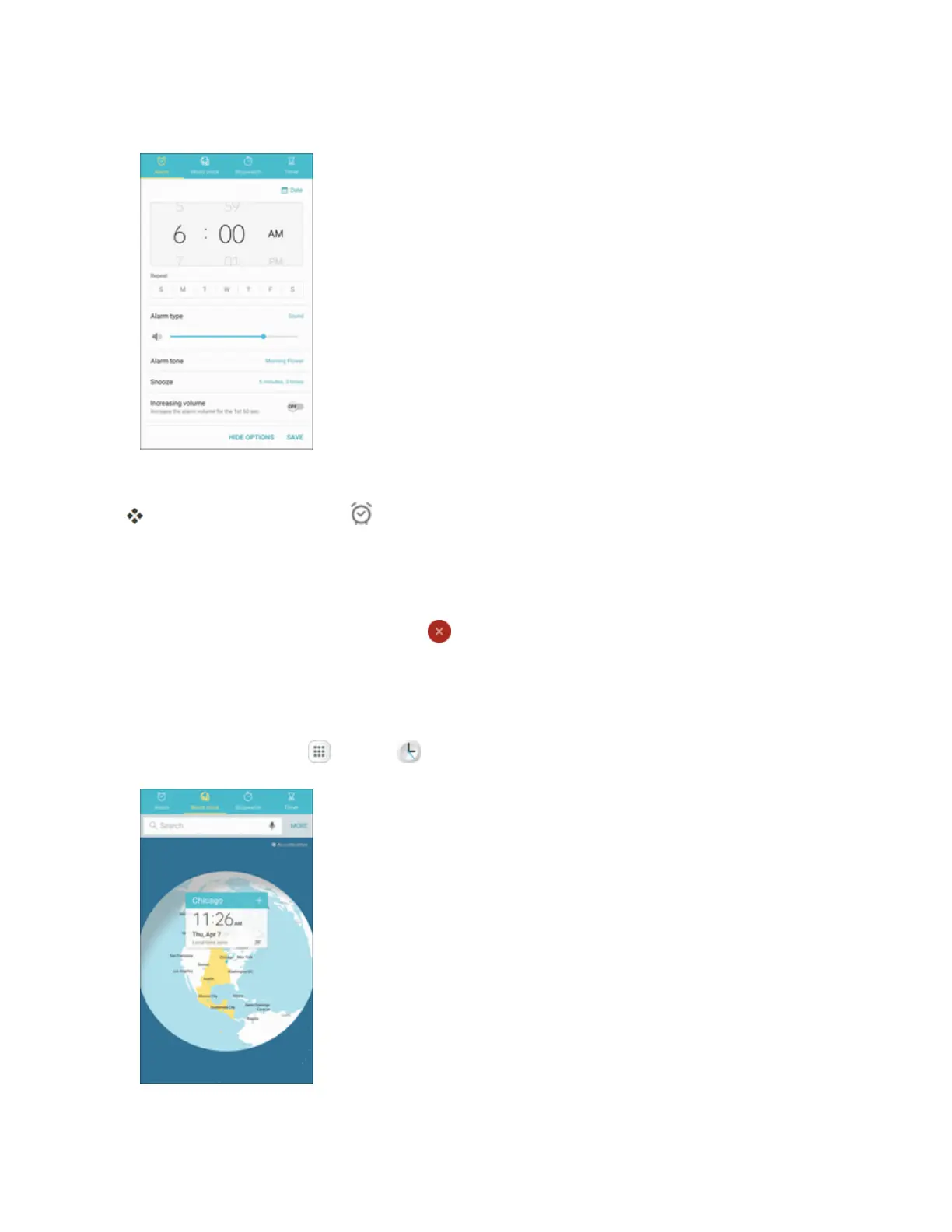 Fromhome,tap Apps >Clock >World clock.