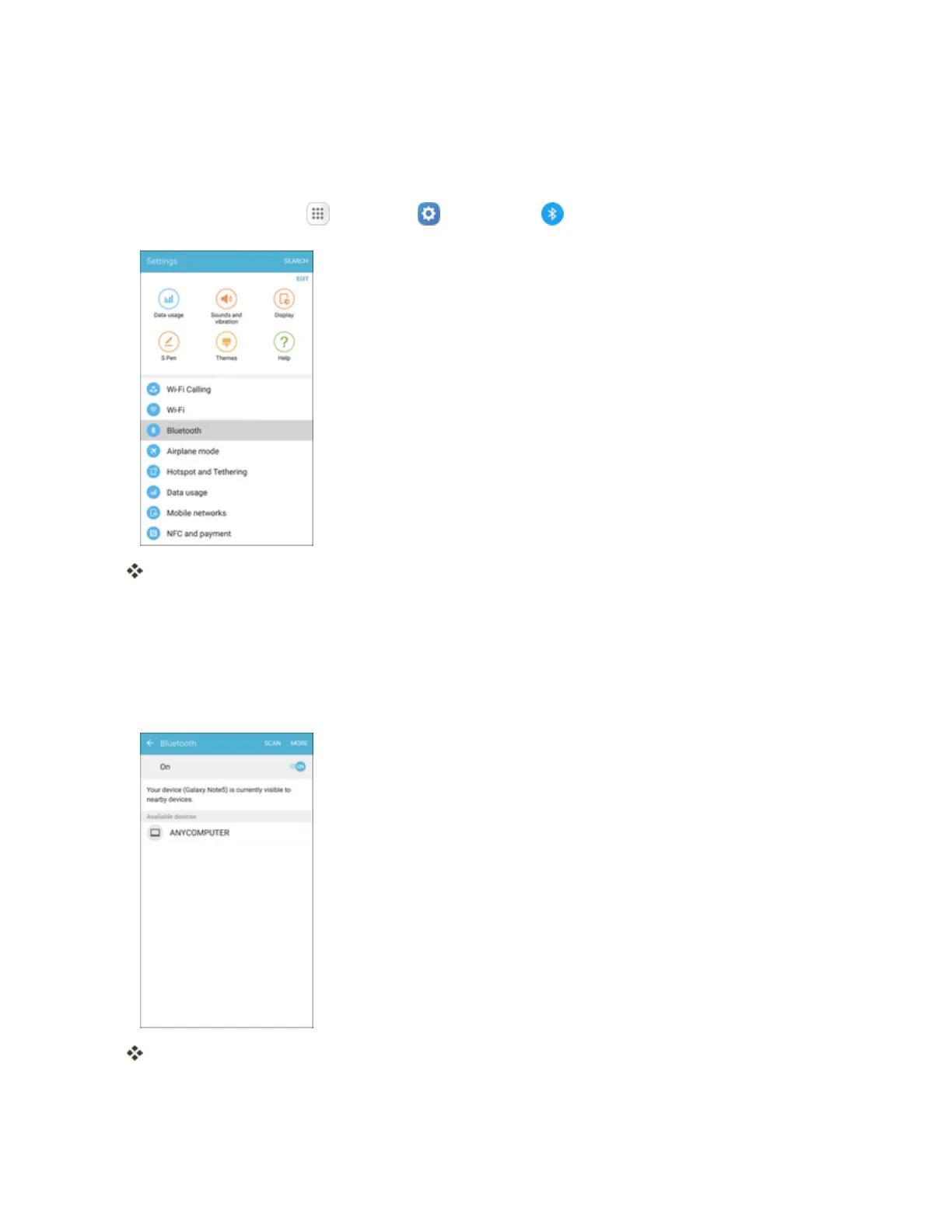 l Nearbydevicesthatarevisibleordiscoverableappearinthe“Availabledevices”list.