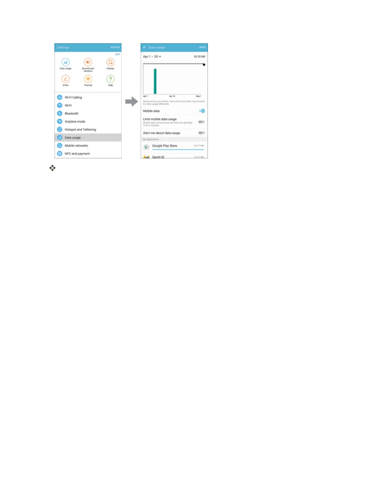 n Application data usage:Tapanappnametoseeitsusagefortheperiod.