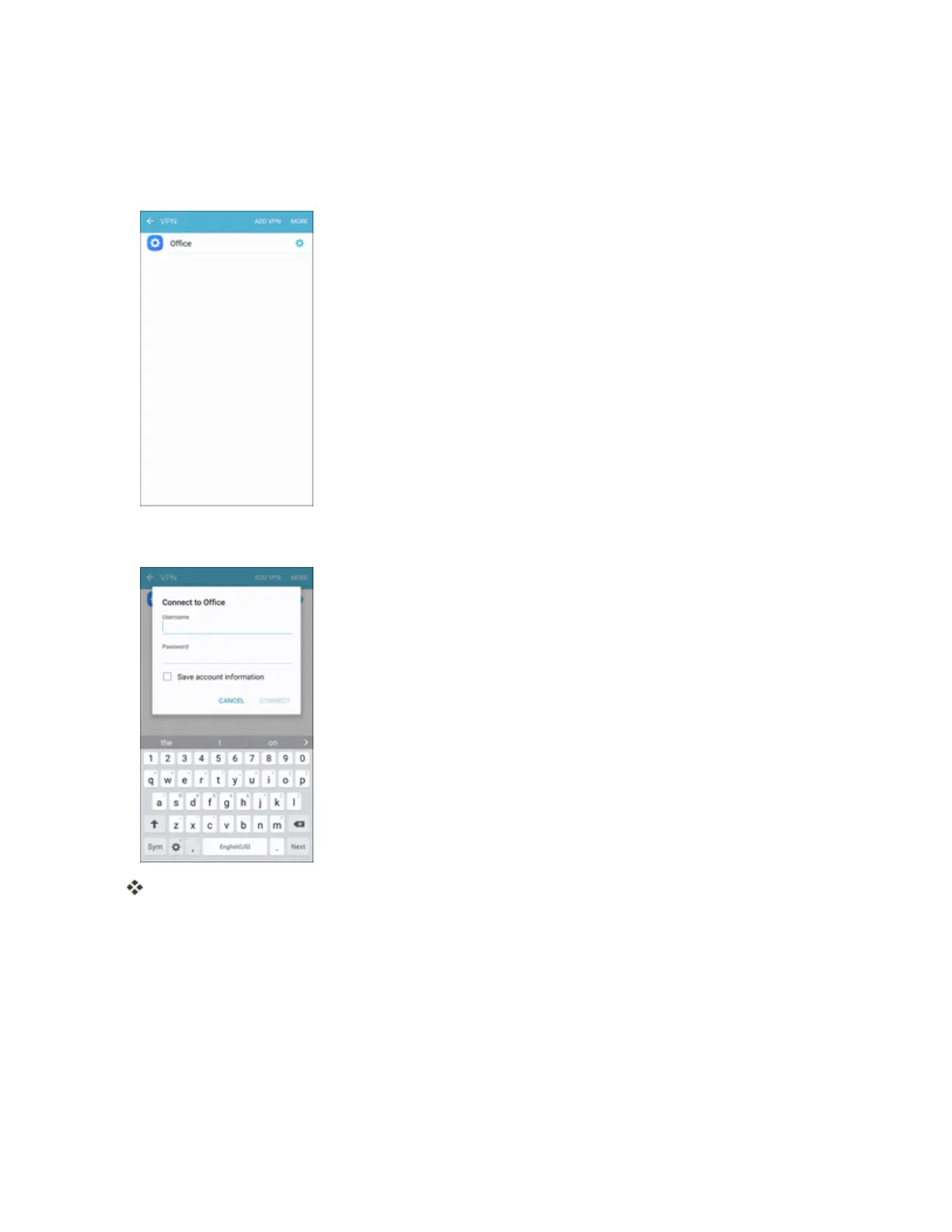 1. FromtheVPNssectionoftheVPNsettingwindow,taptheVPNthatyouwanttoconnectto.