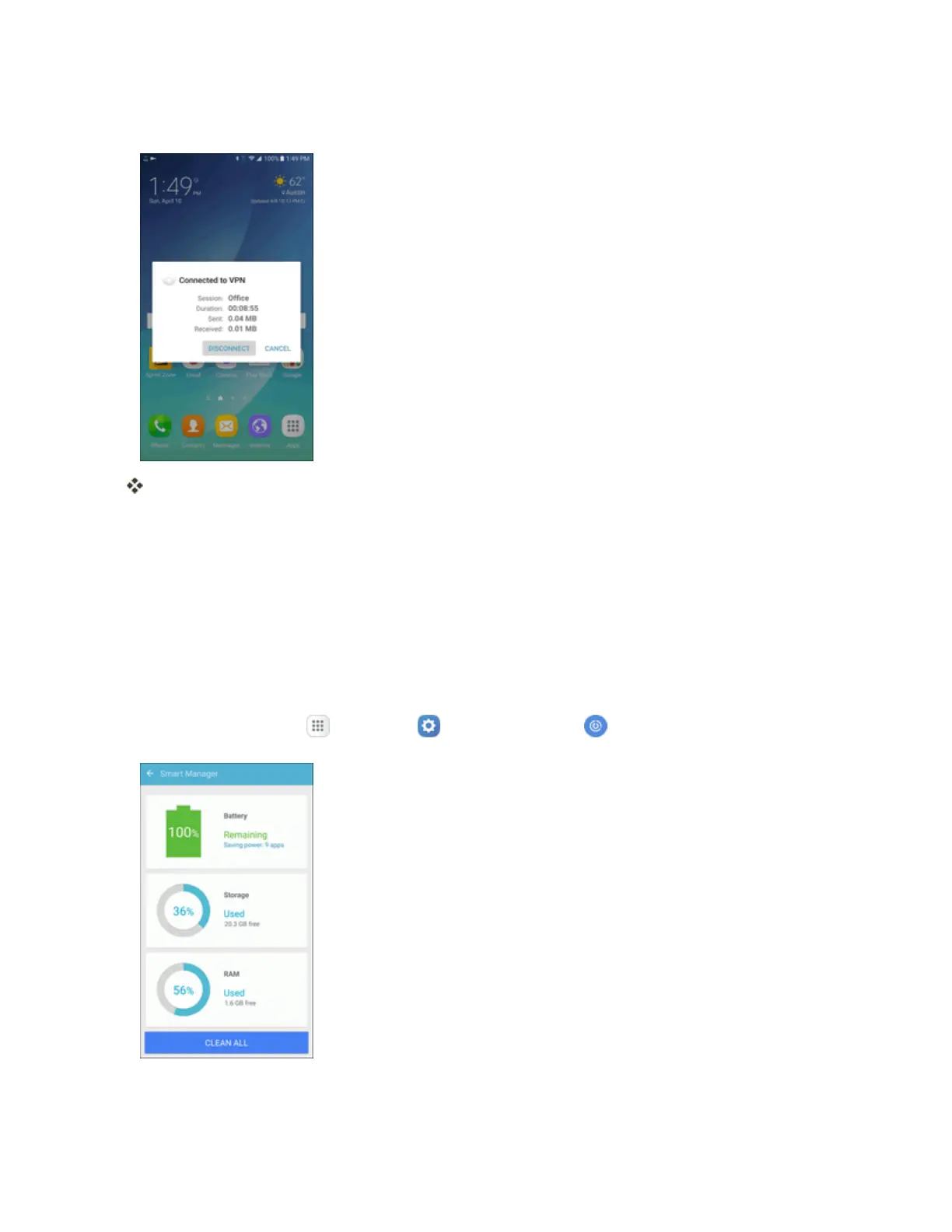 Smartmanagerprovidesanoverviewofthestatusofyourdevice’sbattery,storage,andRAM.You
