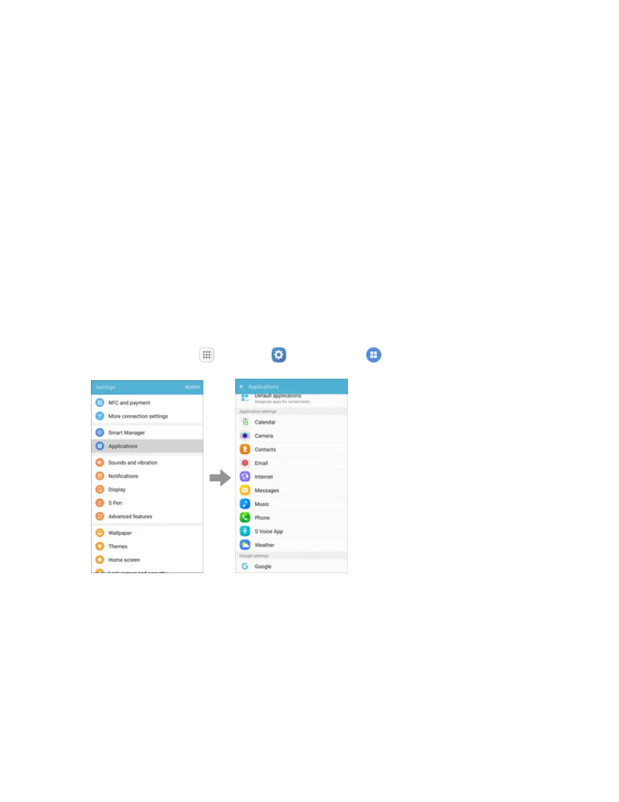 Fromhome,tapApps >Settings >Applications .