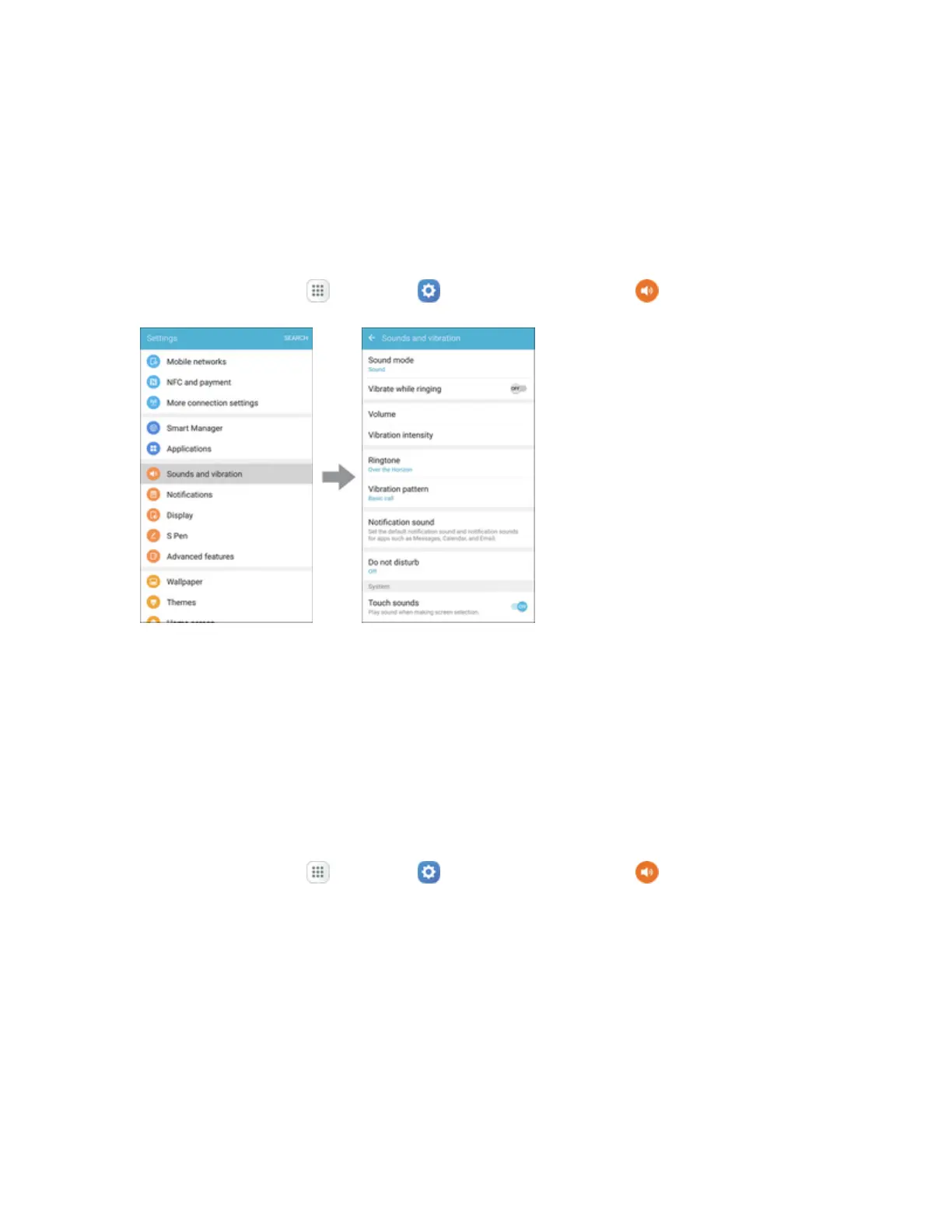 Fromhome,tapApps >Settings >Sounds and vibration .