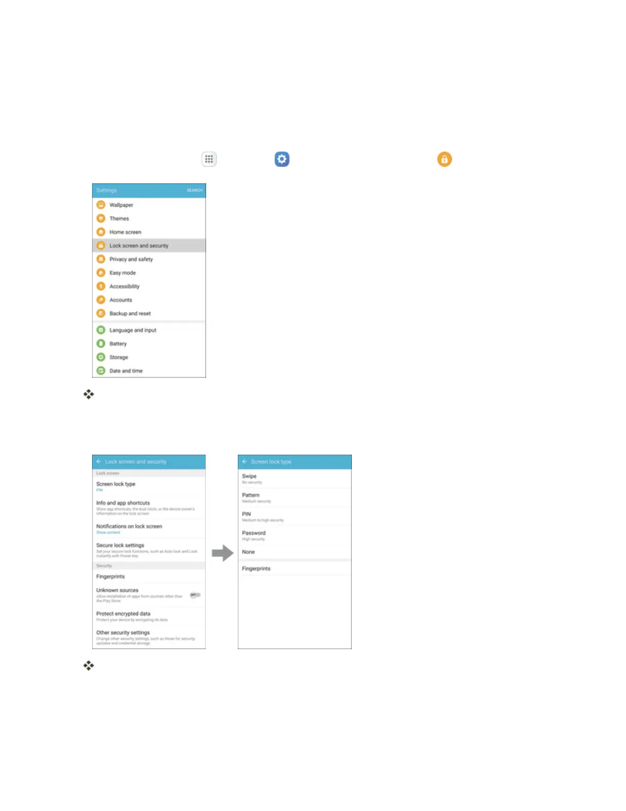2. TapScreen lock type.Ifprompted,enteryourPattern,PIN,Password,orFingerprintto