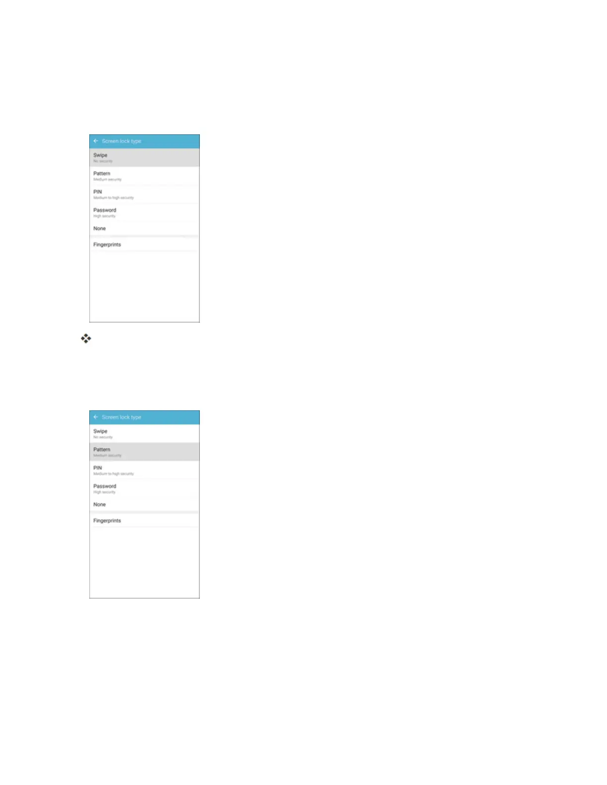 1. FromtheScreenlocktypemenu,tap Pattern.