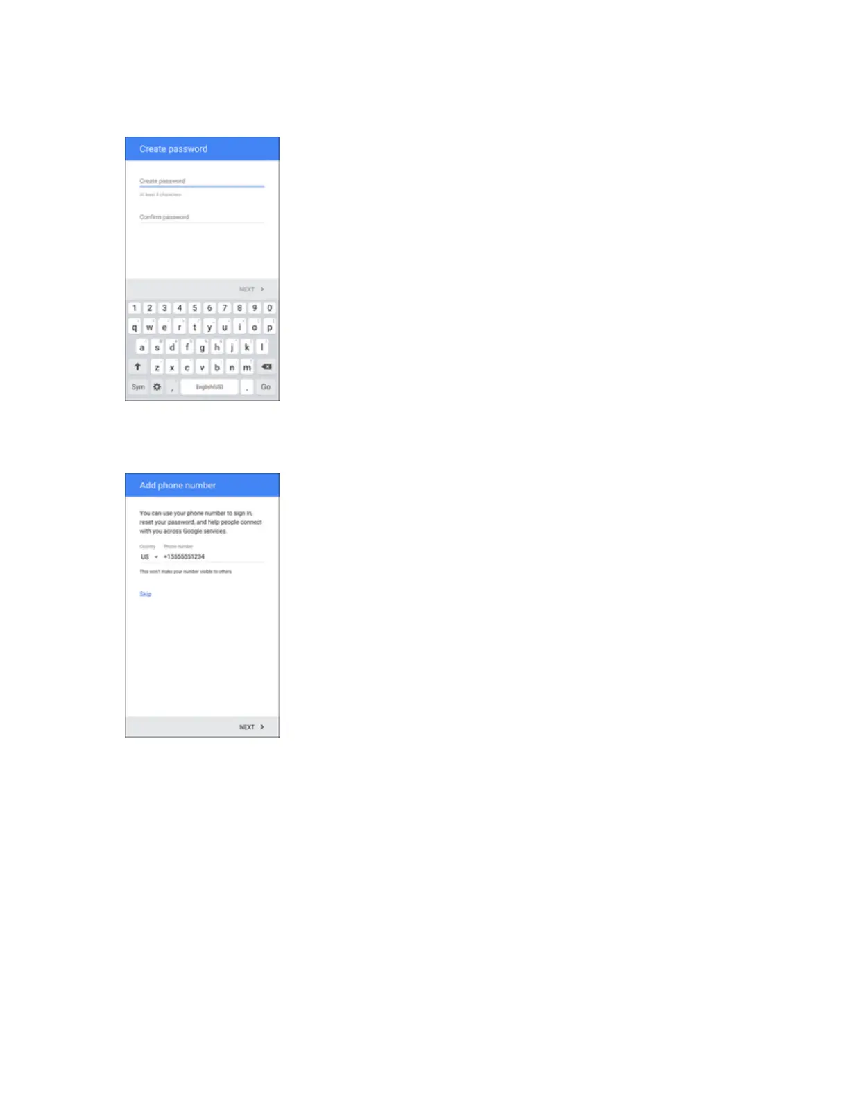 6. Whenprompted,enterandre-typeapassword.ThentapNext.