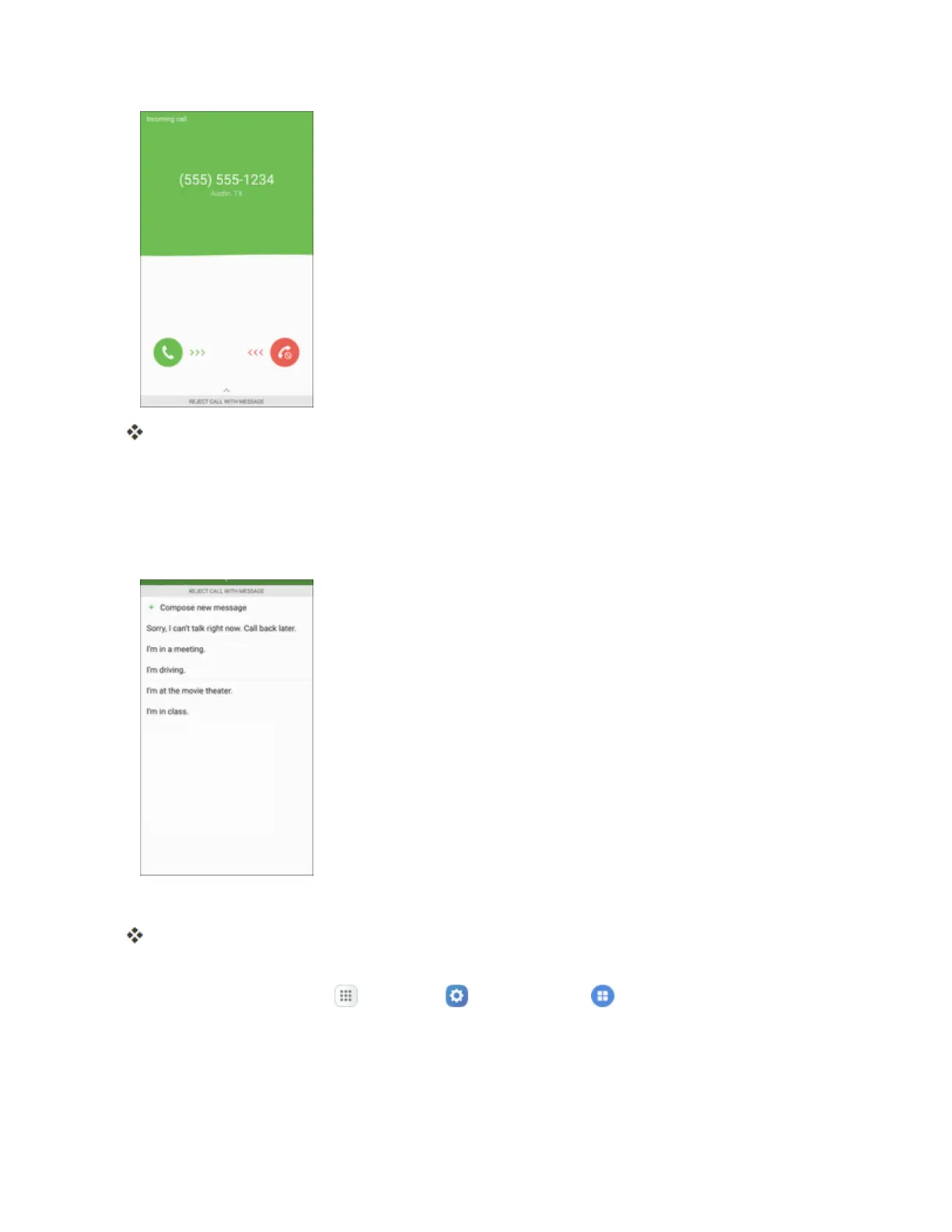 l YoucaneditexistingrejectmessagesorcreatenewonesthroughtheCallsettingsmenu.