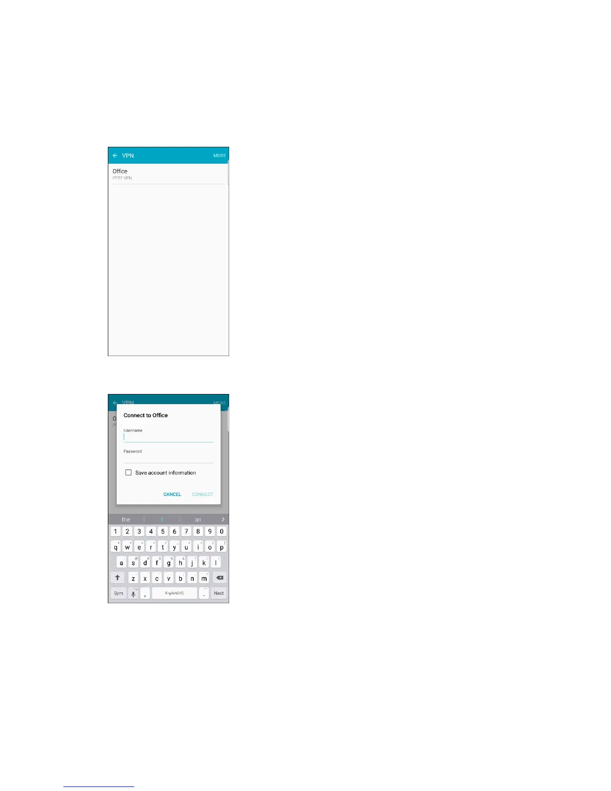 2. When prompted, enter your login credentials, and then tap Connect.