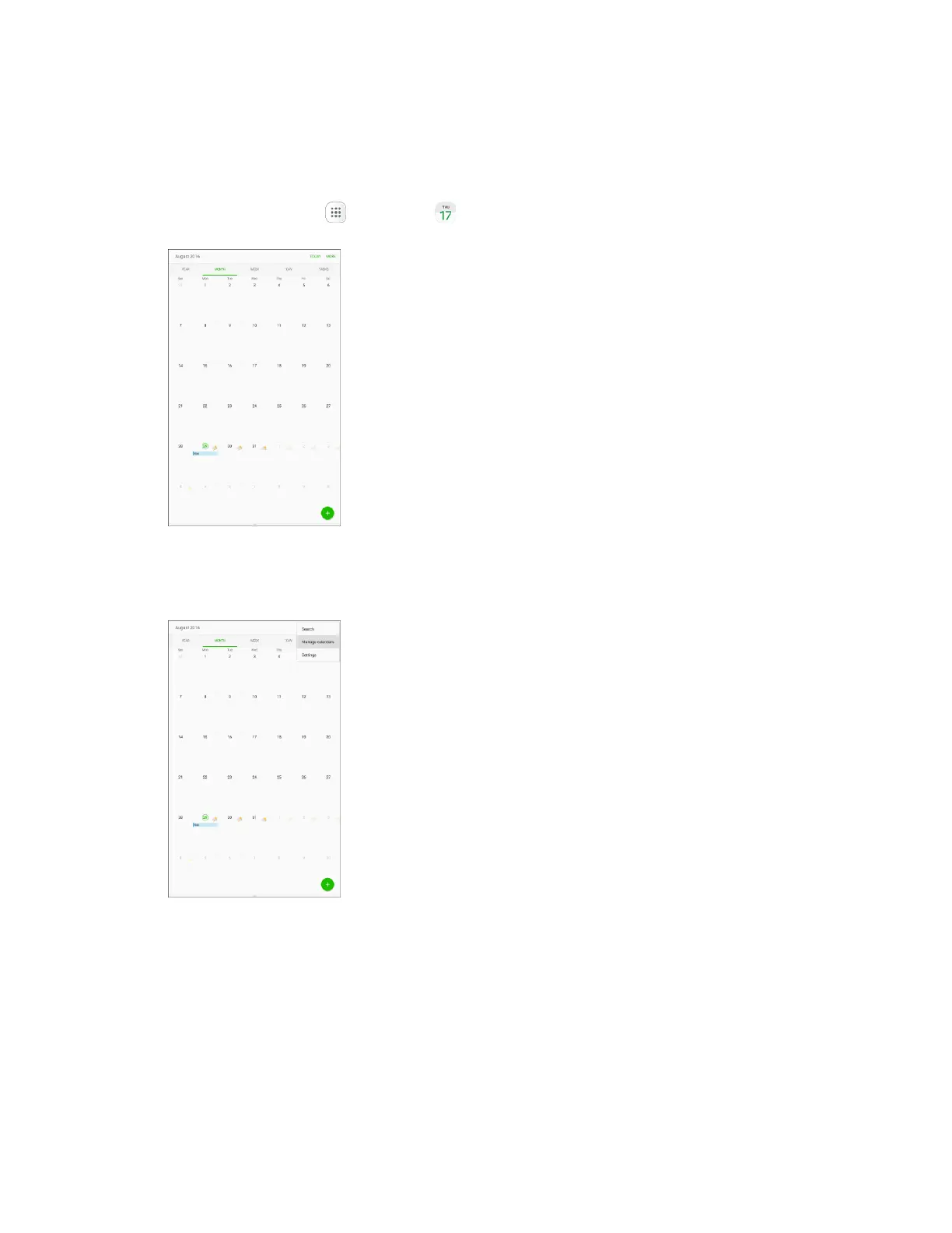 1. From home, tap Apps > Calendar .