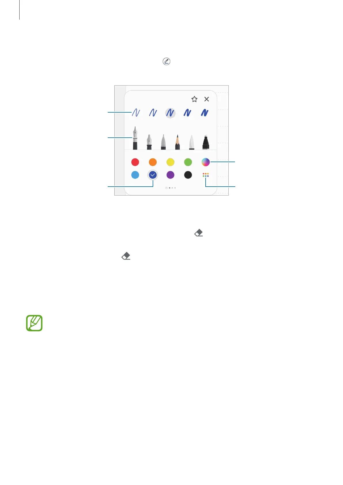 When writing or drawing on the screen, tap to change the pen type, line thickness, or pen