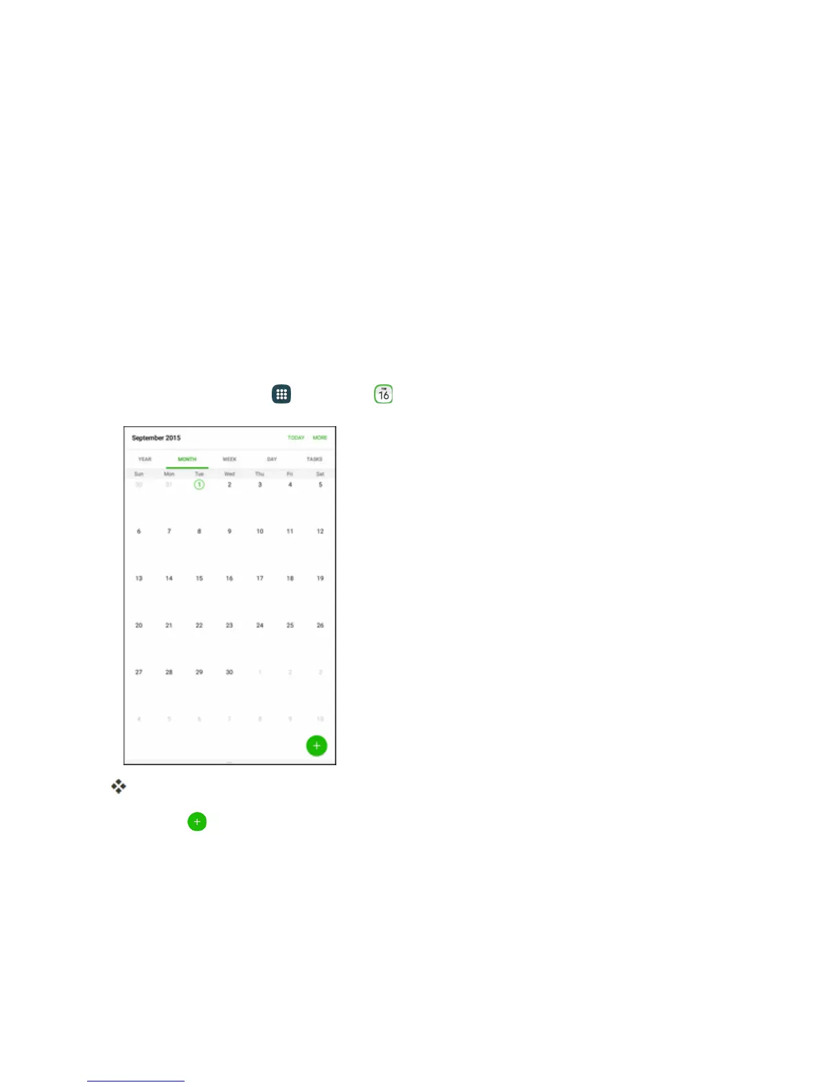 n View the next/previous time period (Year/Month/Week/Day view):FromtheCalendar,flick