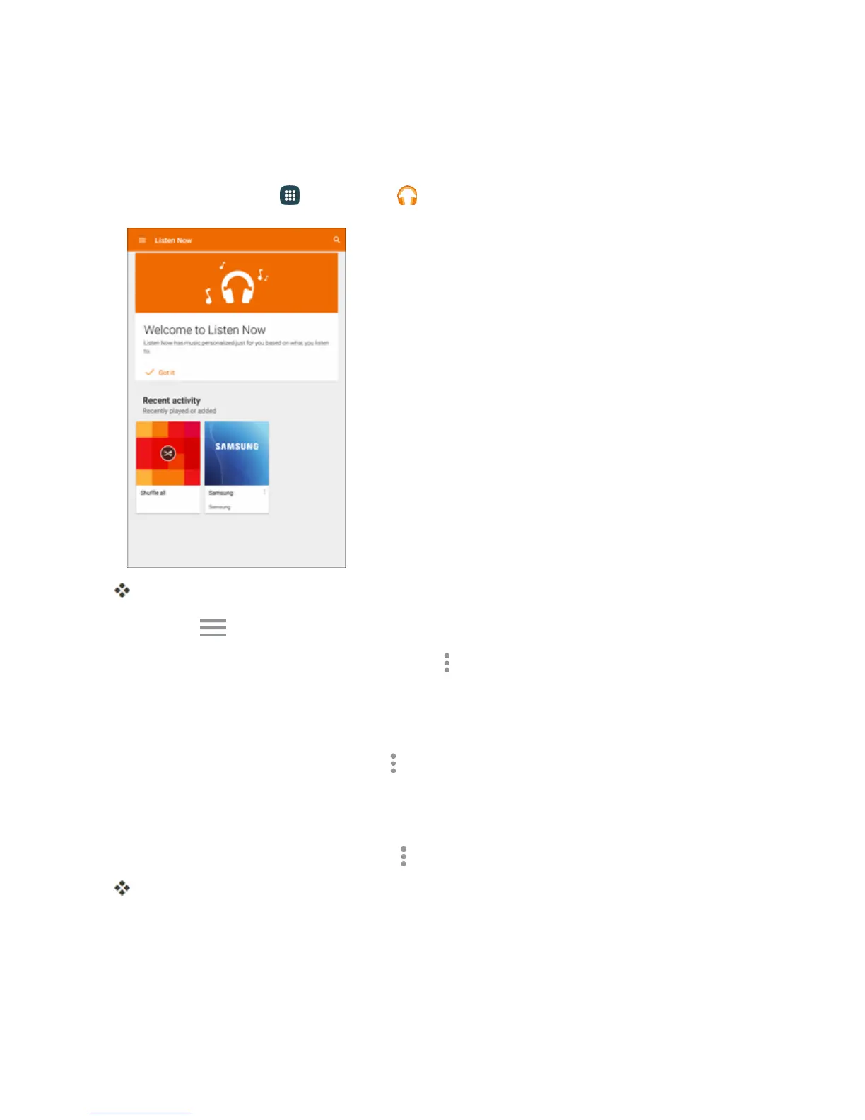 TapMenu toviewyourlibrary,playlists,oraccessGooglePlayMusiconline.