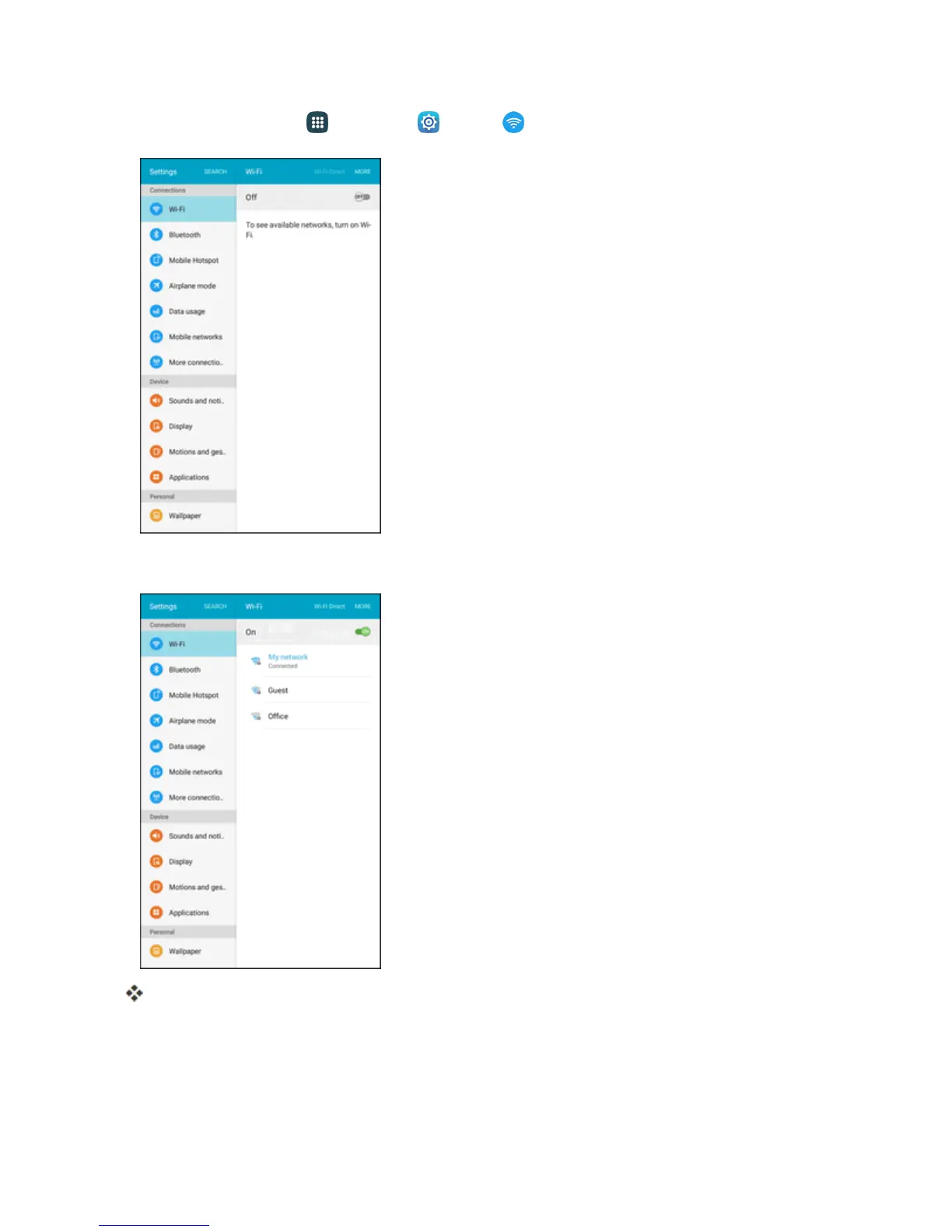 Fromhome,tapApps >Settings >Wi-Fi .