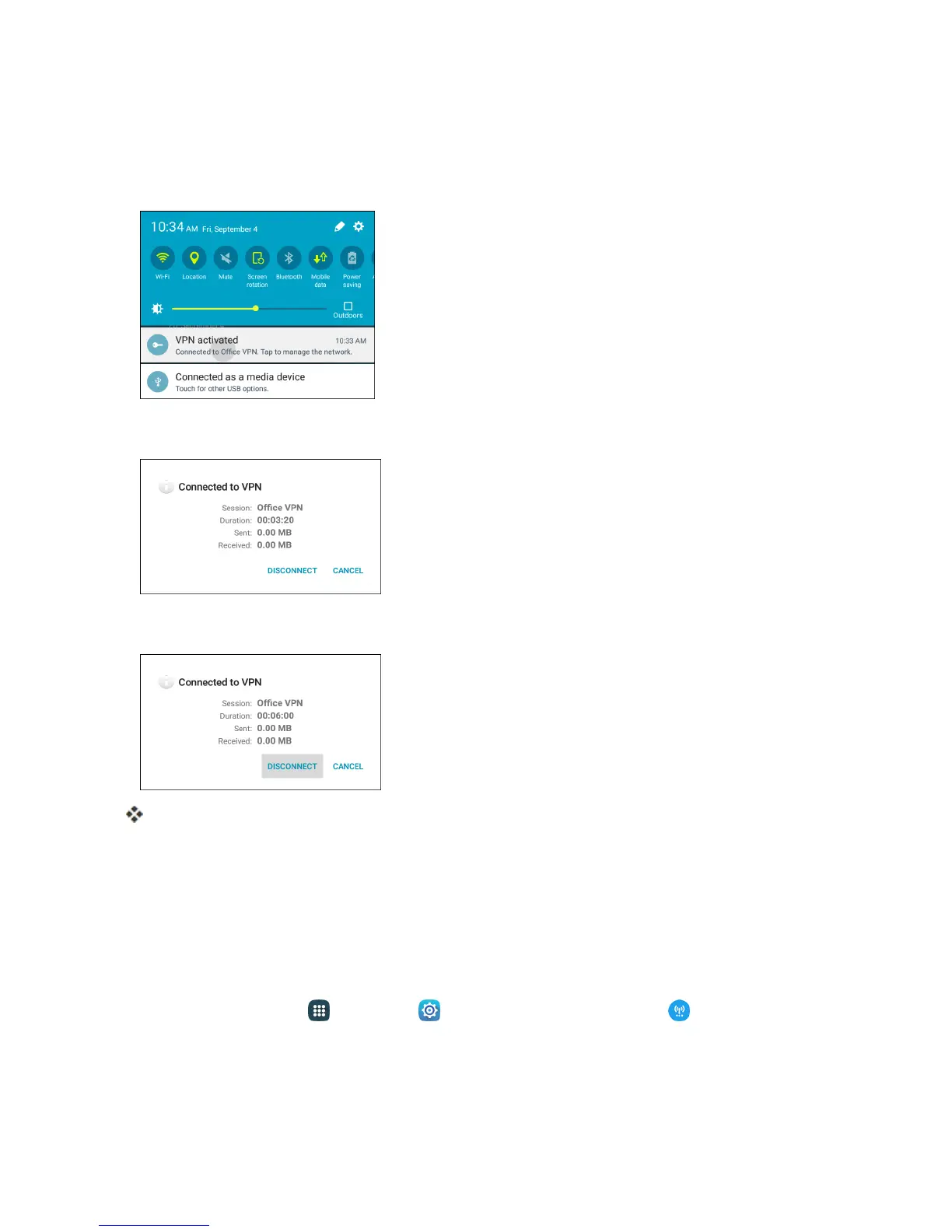 l WhenyourtablethasdisconnectedfromtheVPN,youwillseeaVPNdisconnectediconin