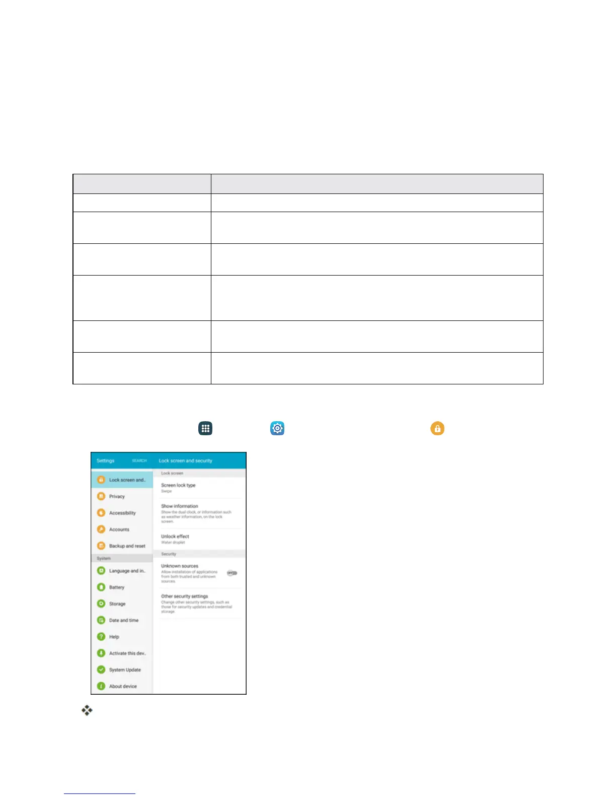Access Lock Screen and Security Options