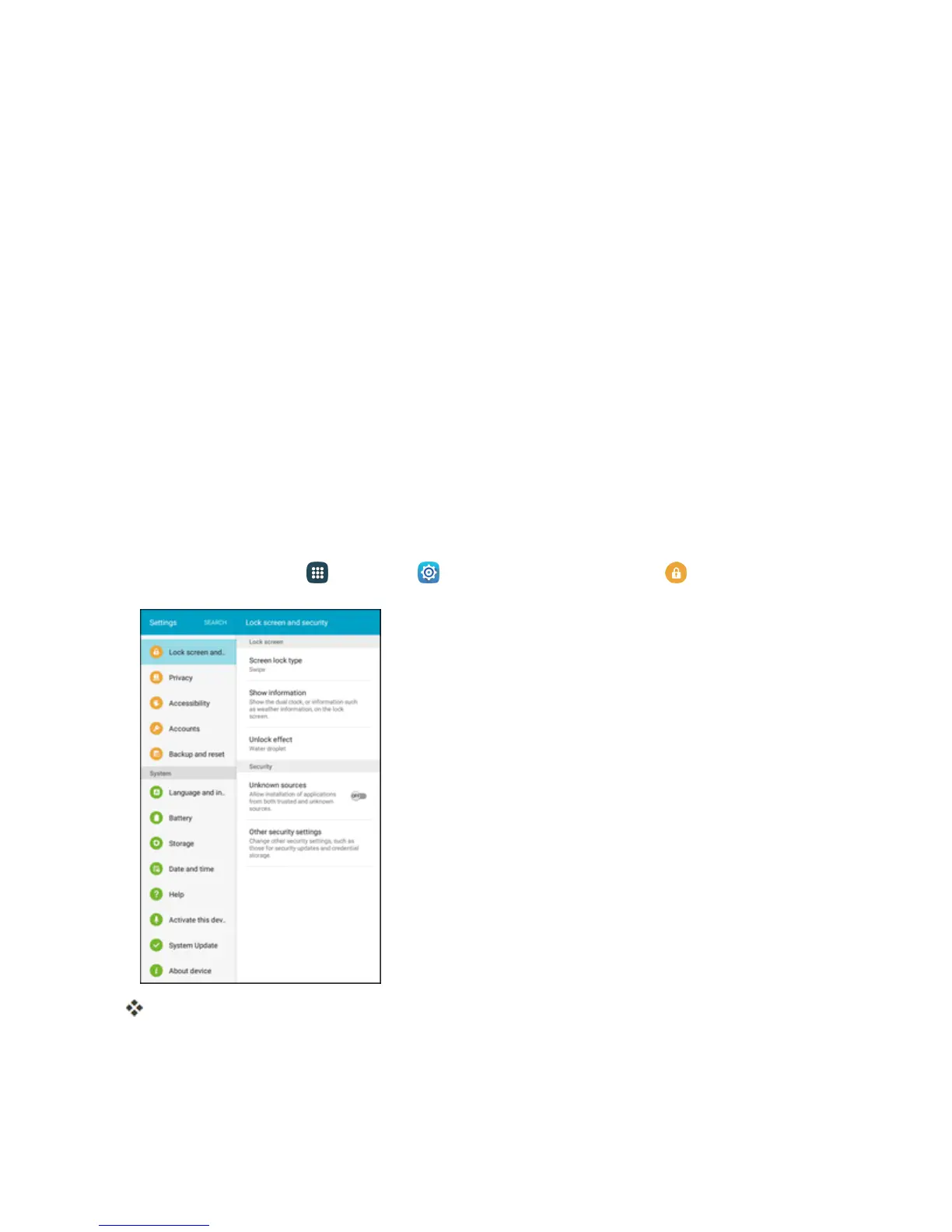 Fromhome,tapApps >Settings >Lock screen and security .