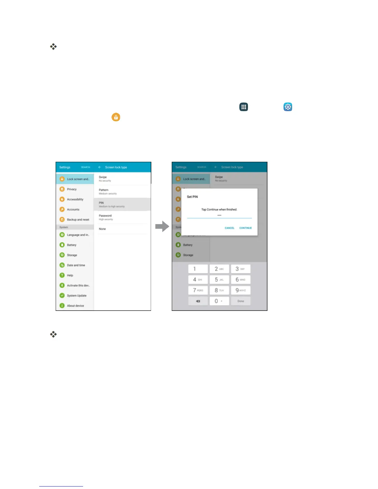 2. EnteraPIN,tapContinue,re-enteryourPIN,andtapOKtosavethesetting.