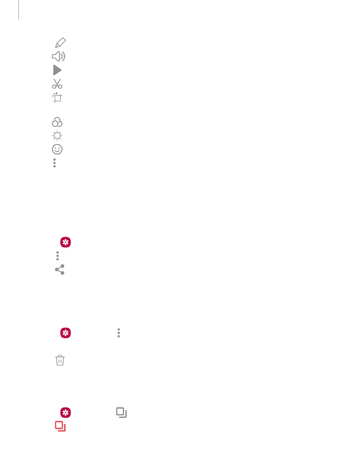 Share pictures and videos from the Gallery app.