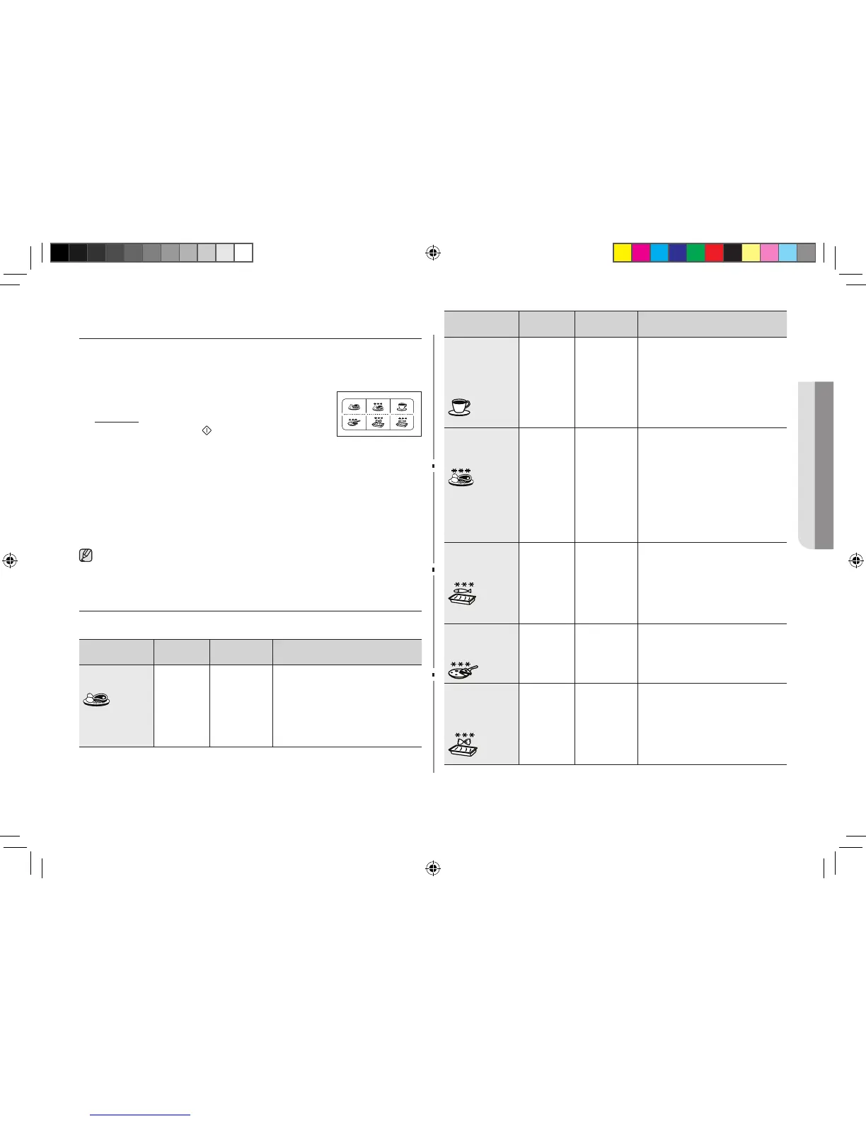 U sljedećoj tablici navedeno je 6 programa za automatsko podgrijavanje/kuhanje