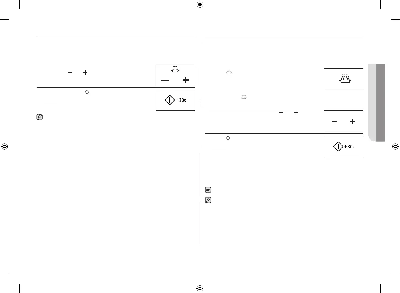 +30s-näppäintä jokaista 30 sekunnin valmistusaikaa kohden. Uuni