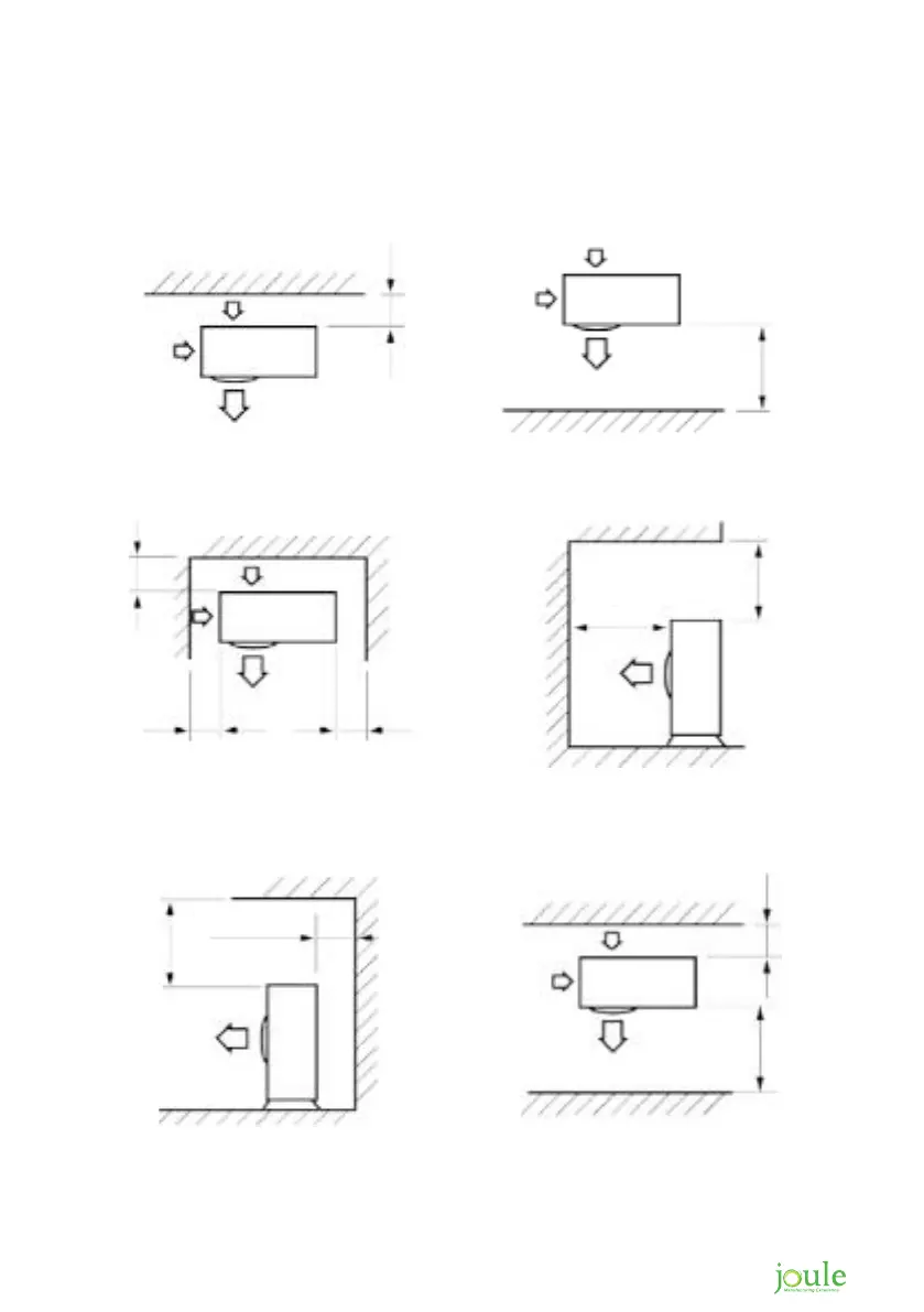 When the air outlet is opposite the wall. When the air outlet is towards the wall.