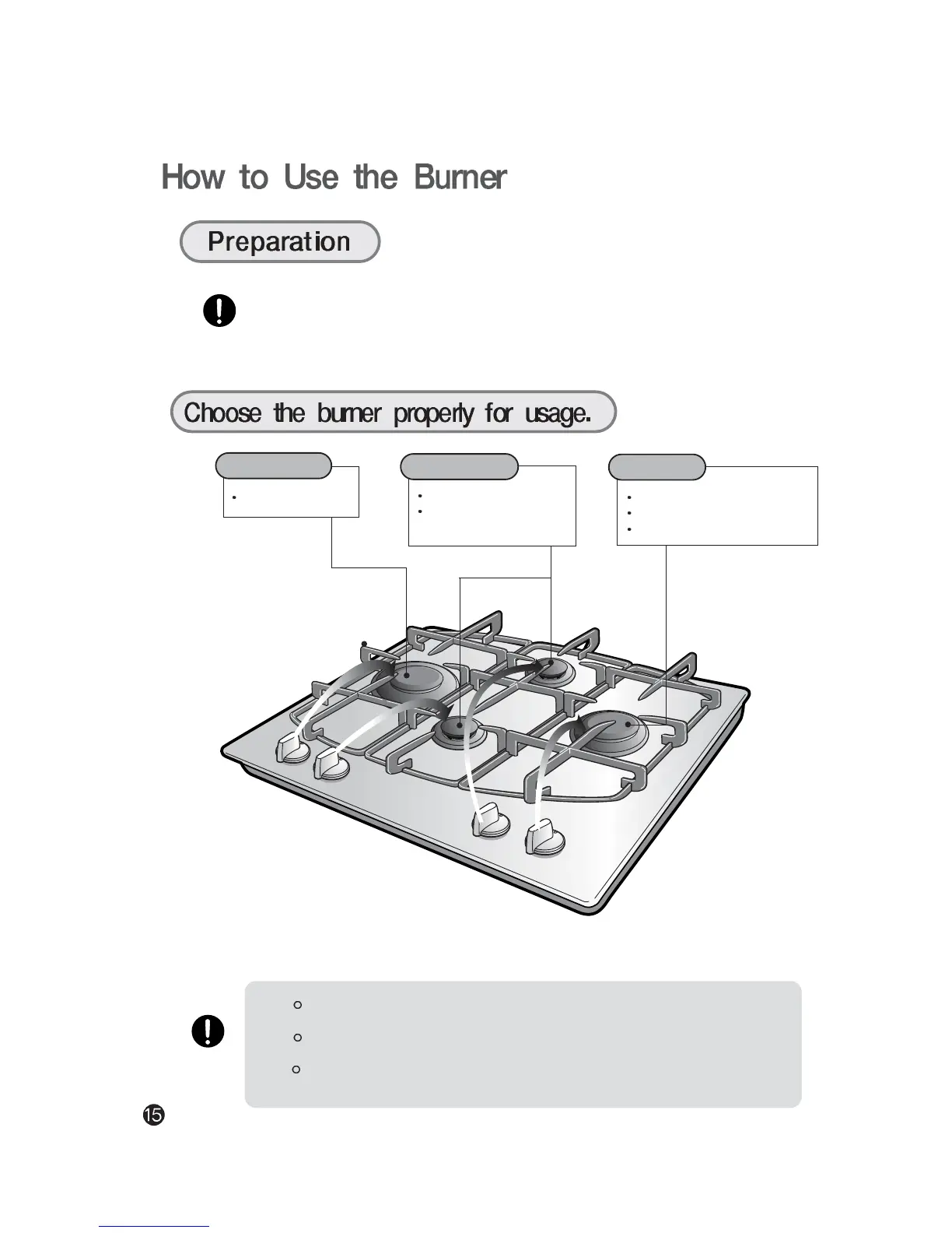 3..Check the burner to be used and the firepower adjustor handle.