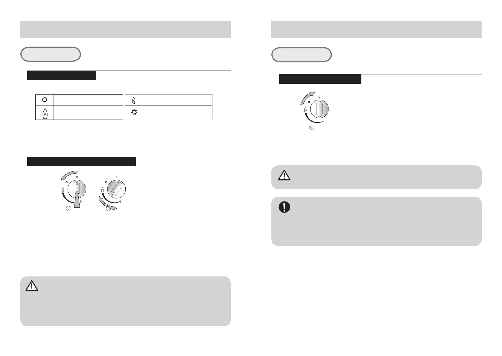■ Fully press down the control handle for the corresponding cooking position and turn it to the
