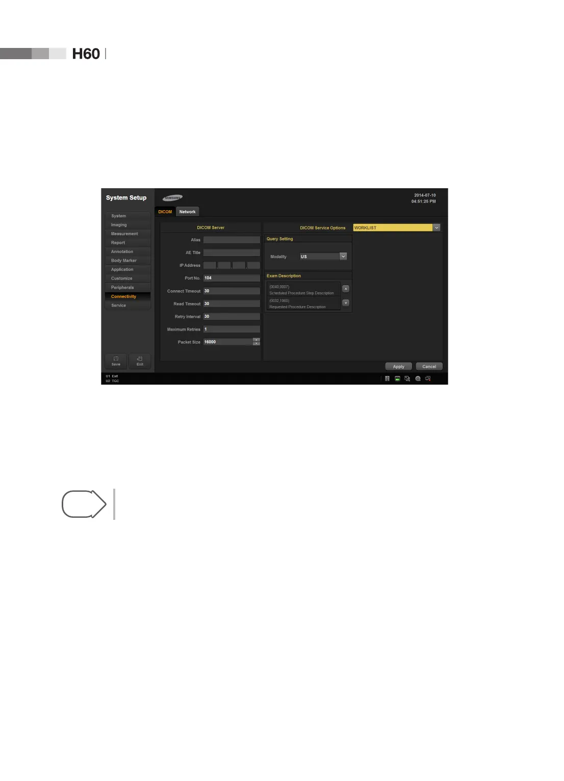 [Figure 3.30 DICOM Service Options - WORKLIST]