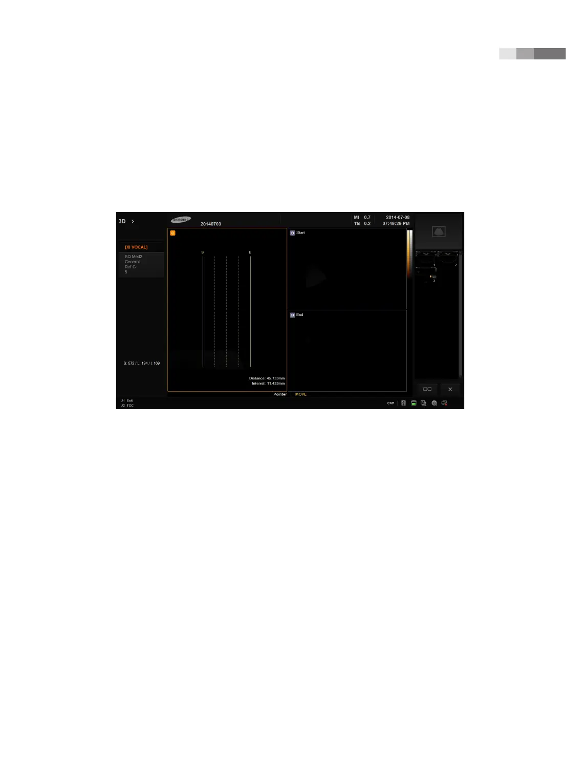 and end (E) points of a slice line are displayed on the right side of the screen.