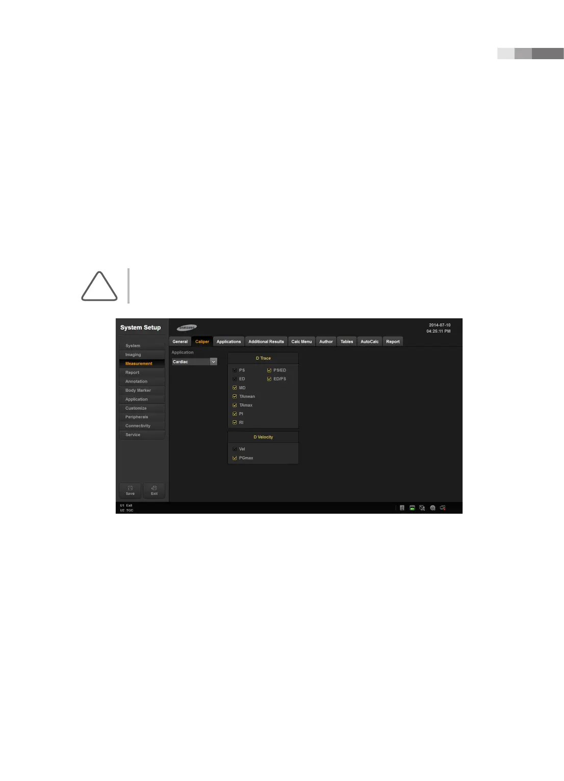 Setting ‘Application’ to General will change the items in ‘D Trace’. Setting ‘Application’ to Cardiac will