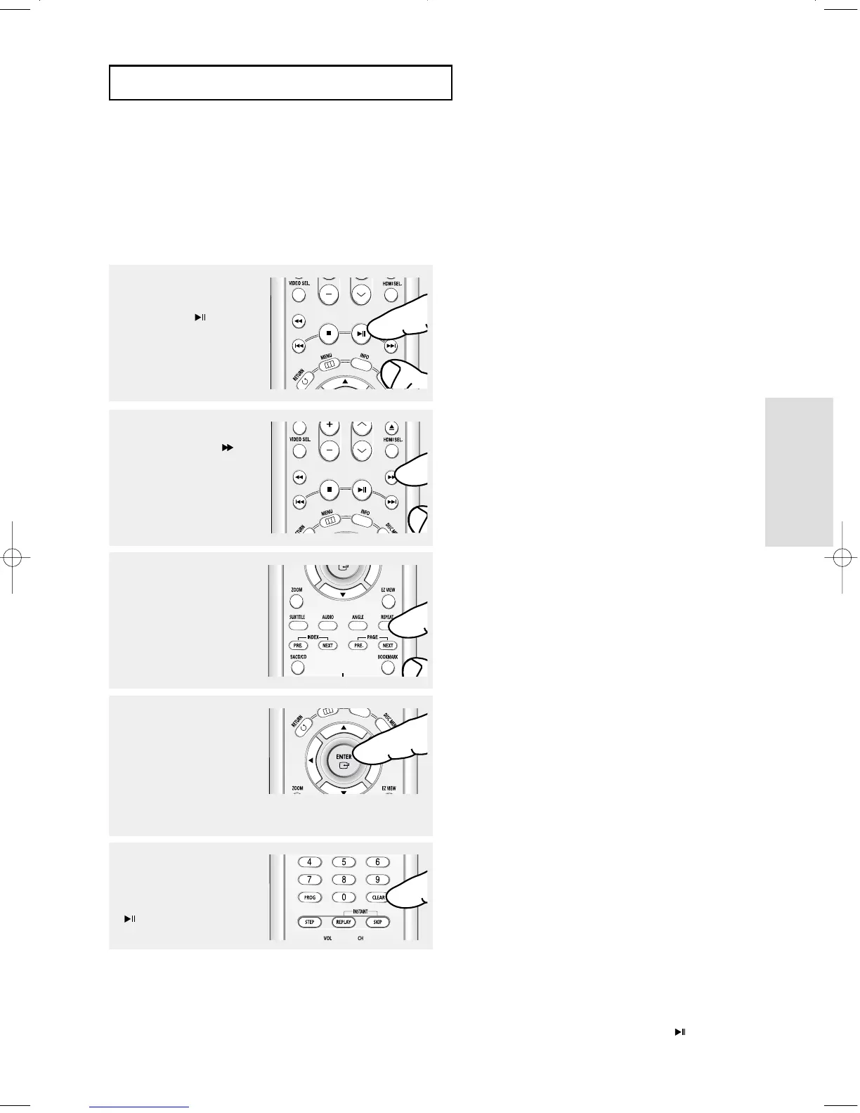 - To return to normal play, press the CLEAR button and then press the PLAY/PAUSE( ) button.