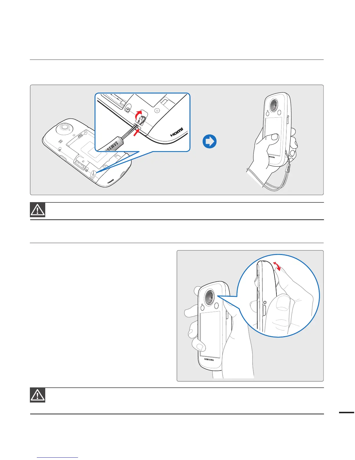Attach the strap and place your hand through the loop to prevent the camcorder from being