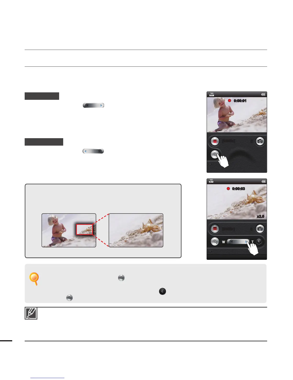 Using the Zoom lever, you can record with digital zoom.