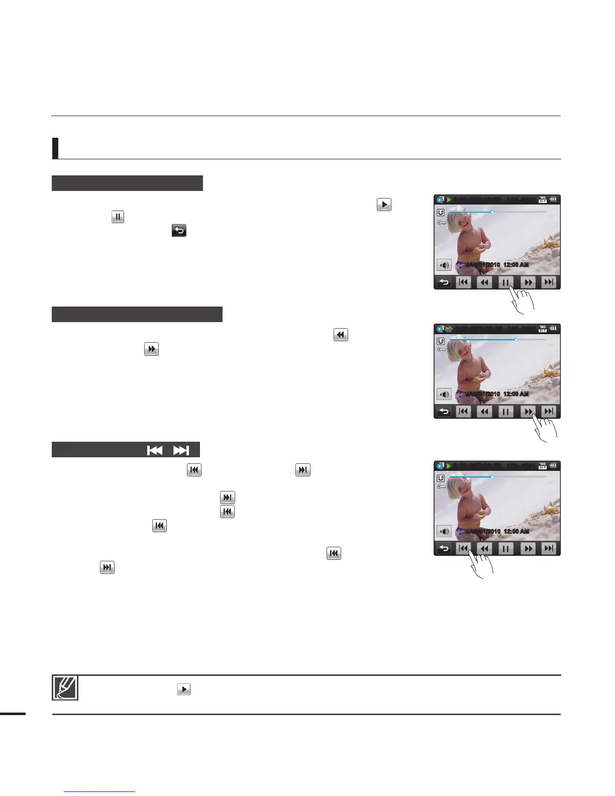 Playback and pause alternates when you touch the Play ( ) /
