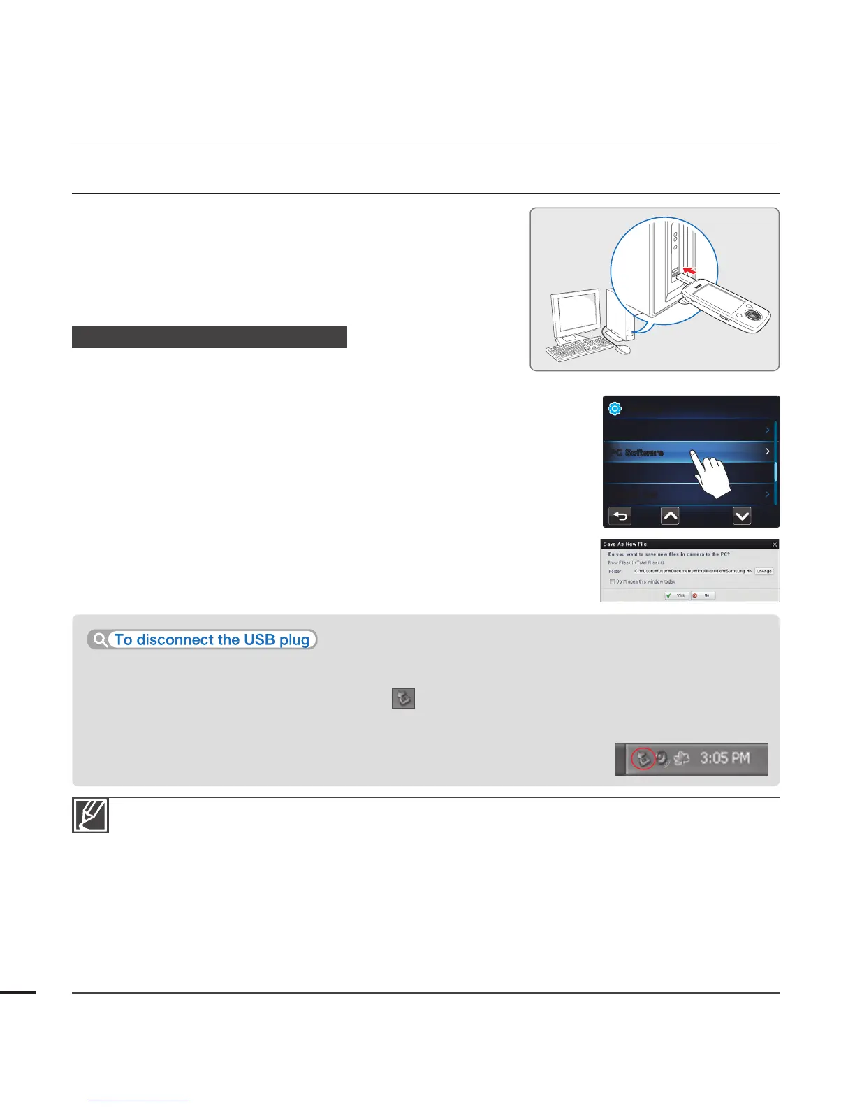 To disconnect the USB plug after completing the fi le transfer, you must follow these steps: