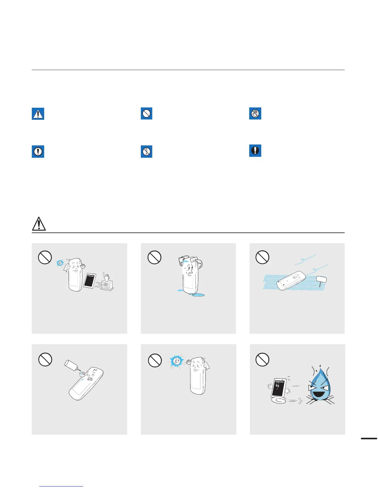 The safety precautions illustrated below are to prevent personal injury or material damages.