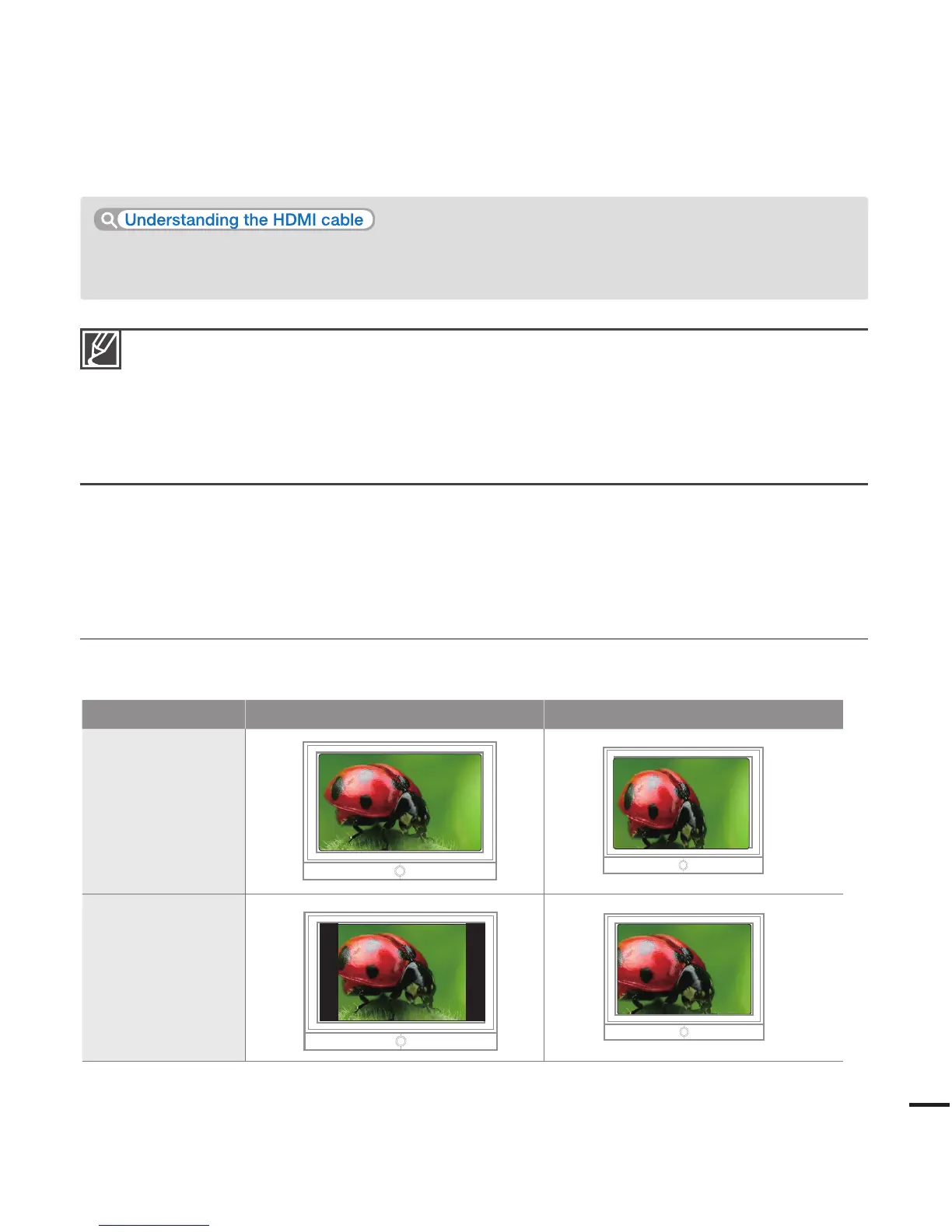 using HDMI cable that is not version 1.3 compatible, the screen display may not work.