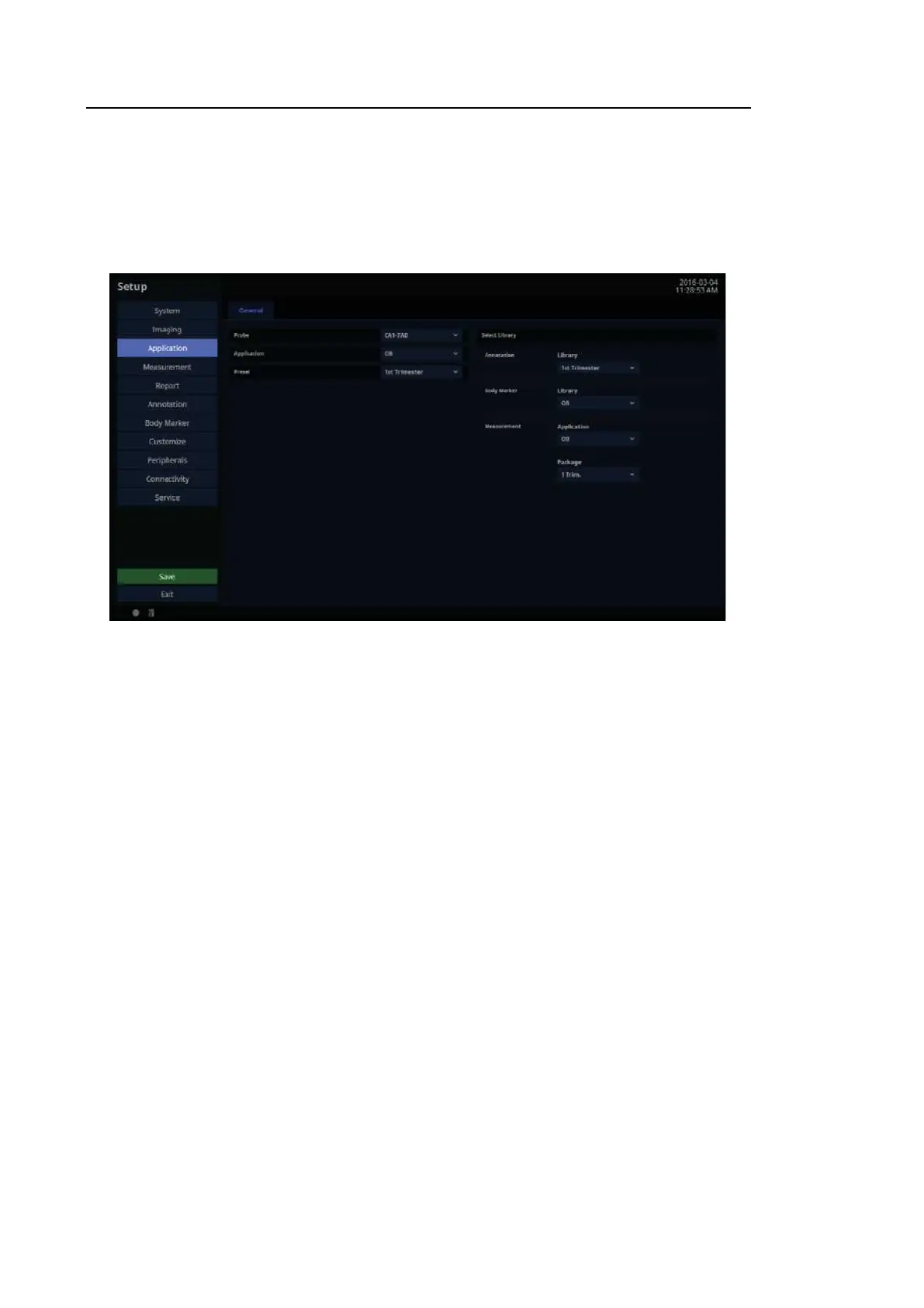 In the Setup screen, select the Application tab. Or tap Application on the touch screen.