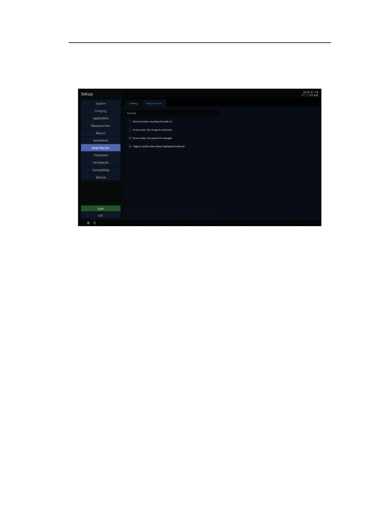 Select whether or not to erase the Body Marker when the Preset is changed.