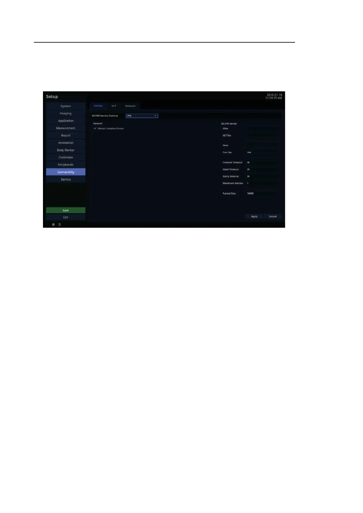 Select DICOM Service Options as the 'PPS' (Performed Procedure Step). Configure the