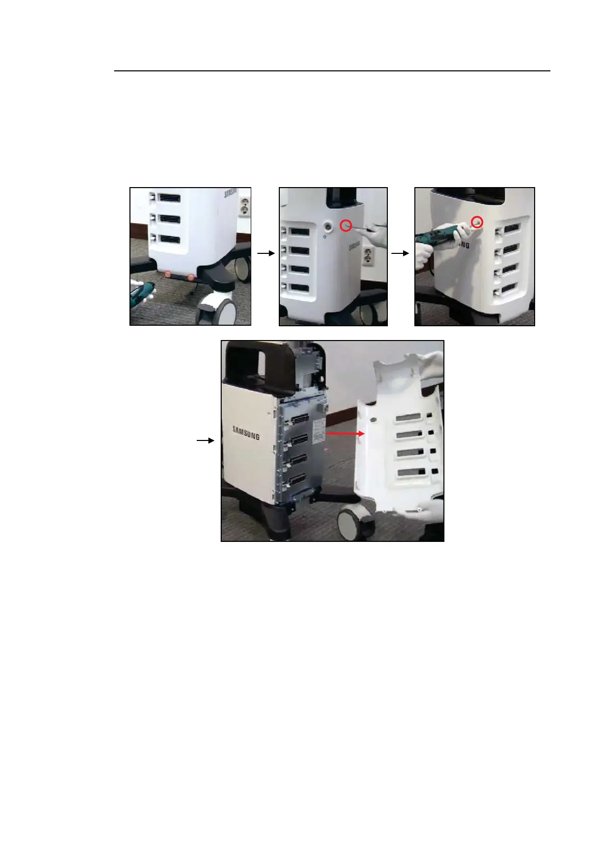 1. First, remove 2 screws at the bottom and 2 screws in front of the Front Case, and detach the