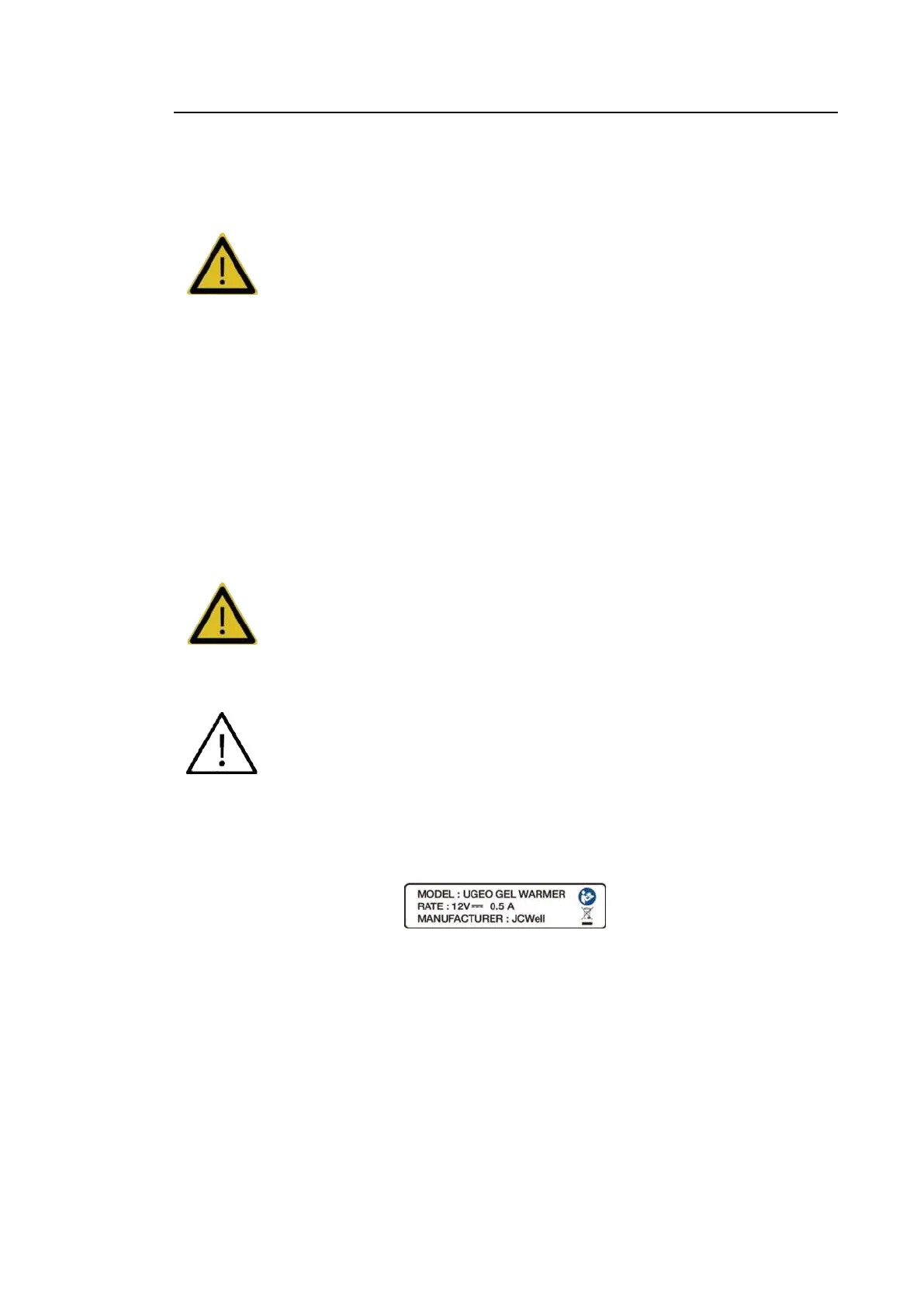 Do not place the probe or any other equipment inside the Gel Warmer.
