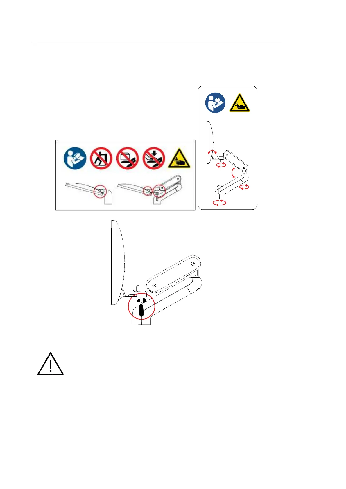 monitor arm. Catching your fingers or other body parts in it may result in injury.