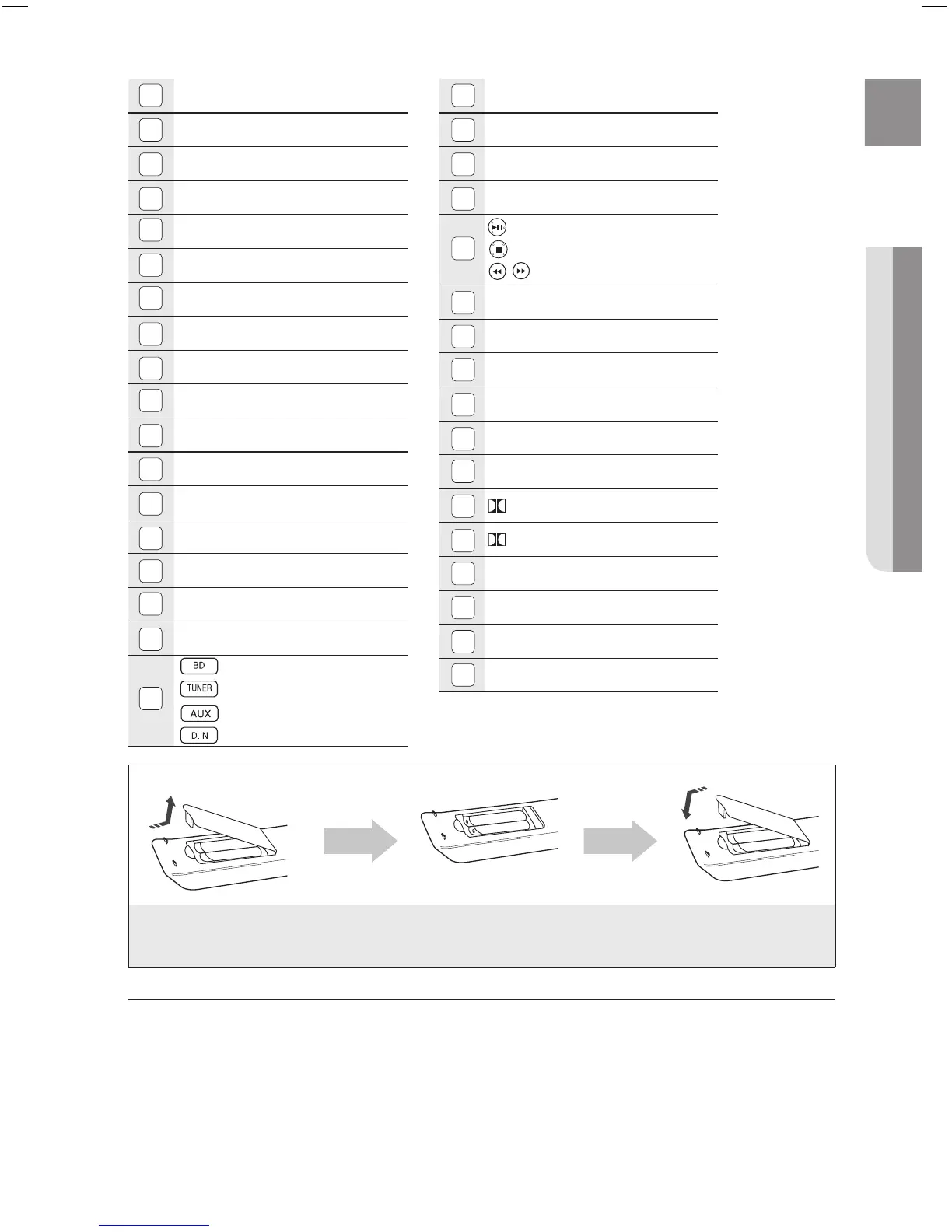 Place batteries in the remote control so they match the polarity : (+) to (+) and (–) to (–).