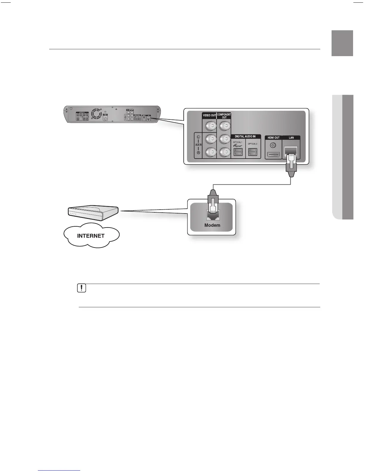 Using the Direct LAN Cable (UTP cable), connect the LAN terminal on the rear of the Blu-ray Home Theater to